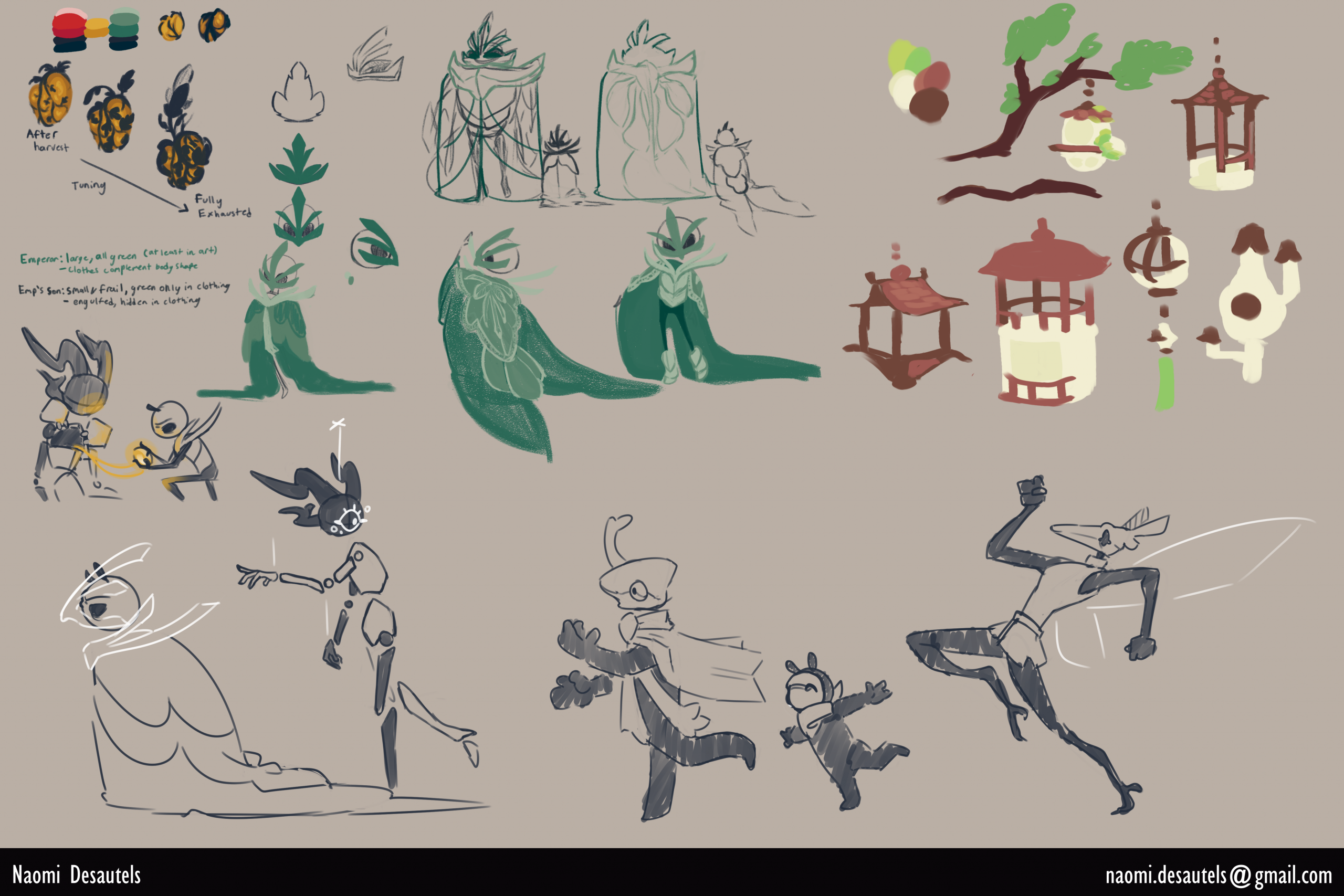 This is the universe I developed throughout my entire academic career. Every time I were to create unique concept designs for a project, I would expand upon this world further. Entire civilizations are created by creatures no taller than a pebble, houses are made from lanterns and bells. With a world so big, there is a lot to be discovered. That is where Oil Lamp Explorations come in. A trusty old bug spearheads this company, along with his nervous intern, and a quirky shape-shifting doll they encountered during their adventures. What will they find next?